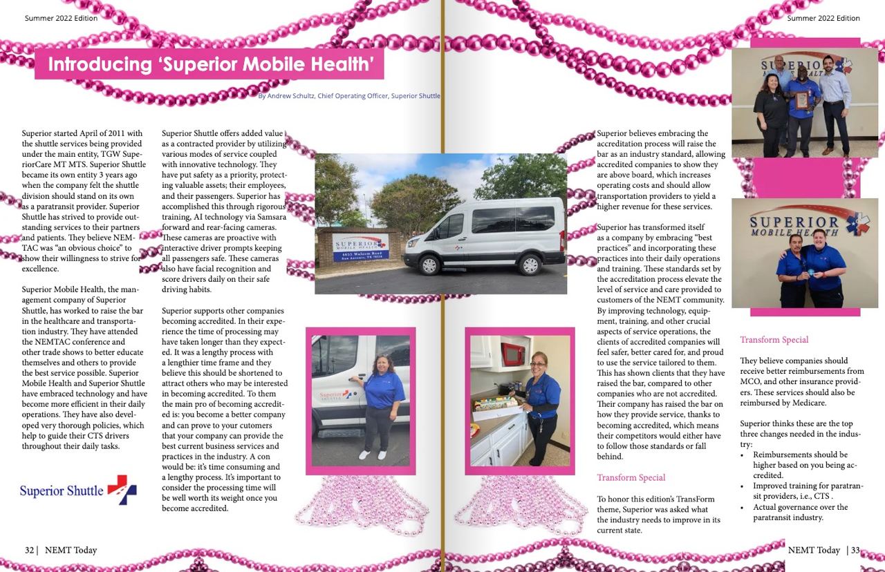 Superior has transformed itself as a company by embracing “best practices” and incorporating these practices into their daily operations and training. These standards set by the accreditation process elevate the level of service and care provided to customers of the NEMT community.